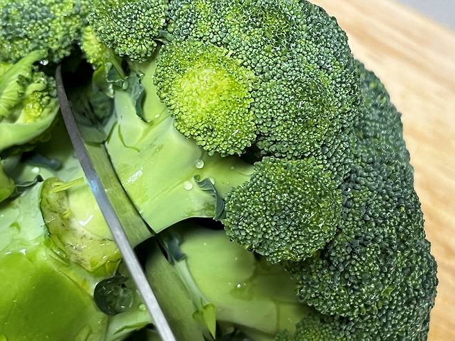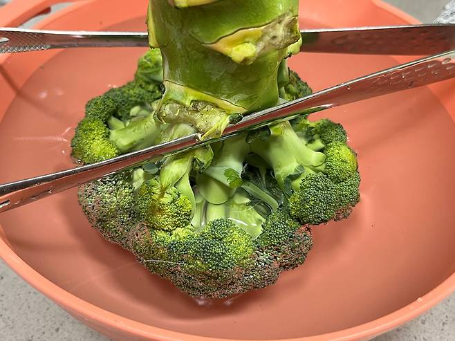 브로콜리 깔끔하게 자르는 방법도 함께 알려드립니다. 브로콜리는 절대 머리 부분을 먼저 자르지 마세요! 알갱이가 우수수 떨어집니다.
