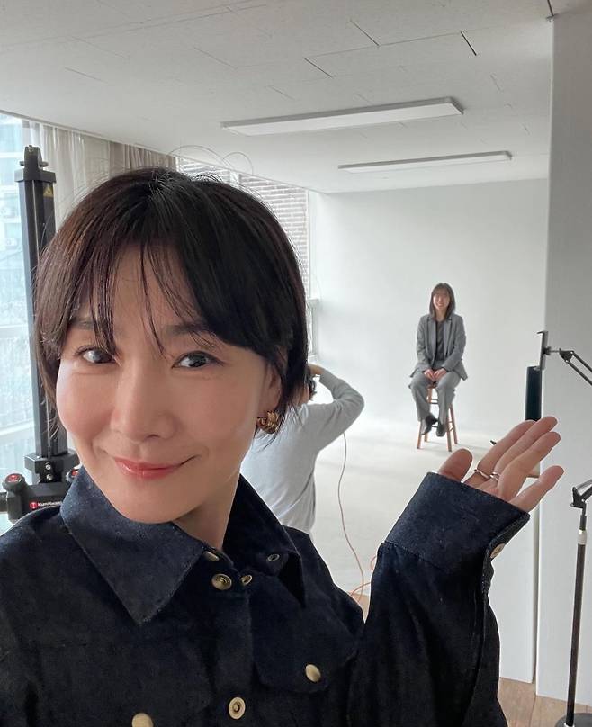 배우 박효주가 최근 SNS에 남방에 슬랙스를 매치한 단정한 차림새로 촬영에 임했습니다.