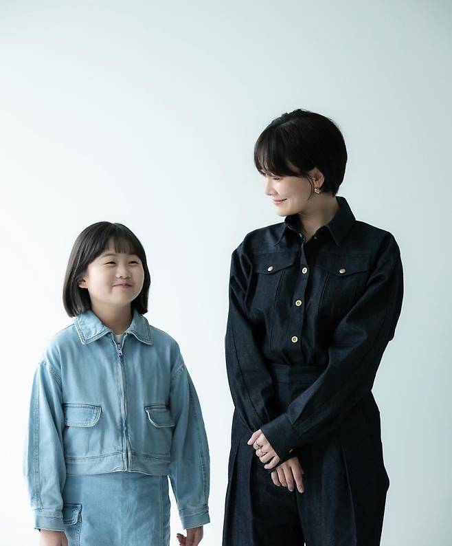 데님 소재의 남방이 룩의 디테일을 살려주고 있습니다. 골드 귀걸이와 골드 버튼을 통일해 패션을 세련되게 완성했습니다.