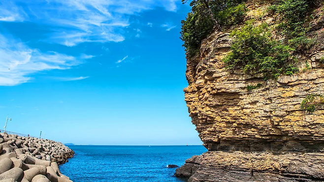 해안 산책로를 따라 걷다 보면 정자와 전망대가 나타난다. 특히 닭이봉 구간은 퇴적층이 가장 극적으로 드러나는 포인트다. 사진을 남기고 싶다면 이 구간을 놓치지 말자.