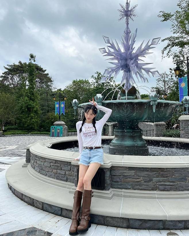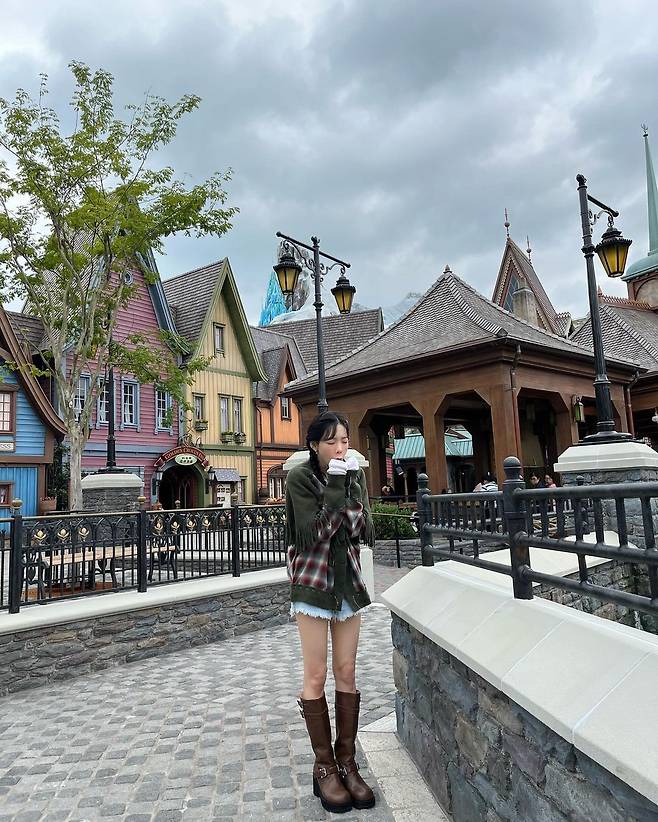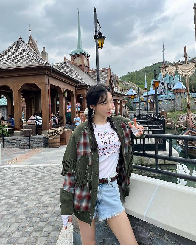 사진 속 태연은 영문이 써져있는 흰티와 연청반바지를 입고 체크무늬 포인트가 있는 카키색 가디건을 걸쳤다. 브라운 롱부츠를 신고 귀엽고 러블리한 패션으로 놀이동산을 한껏 즐기는 모습을 보여주었다.
