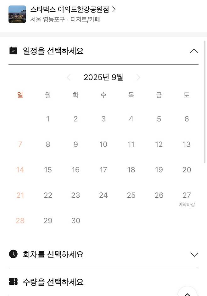 스타벅스 여의도 한강공원점이 이렇게 한강에
