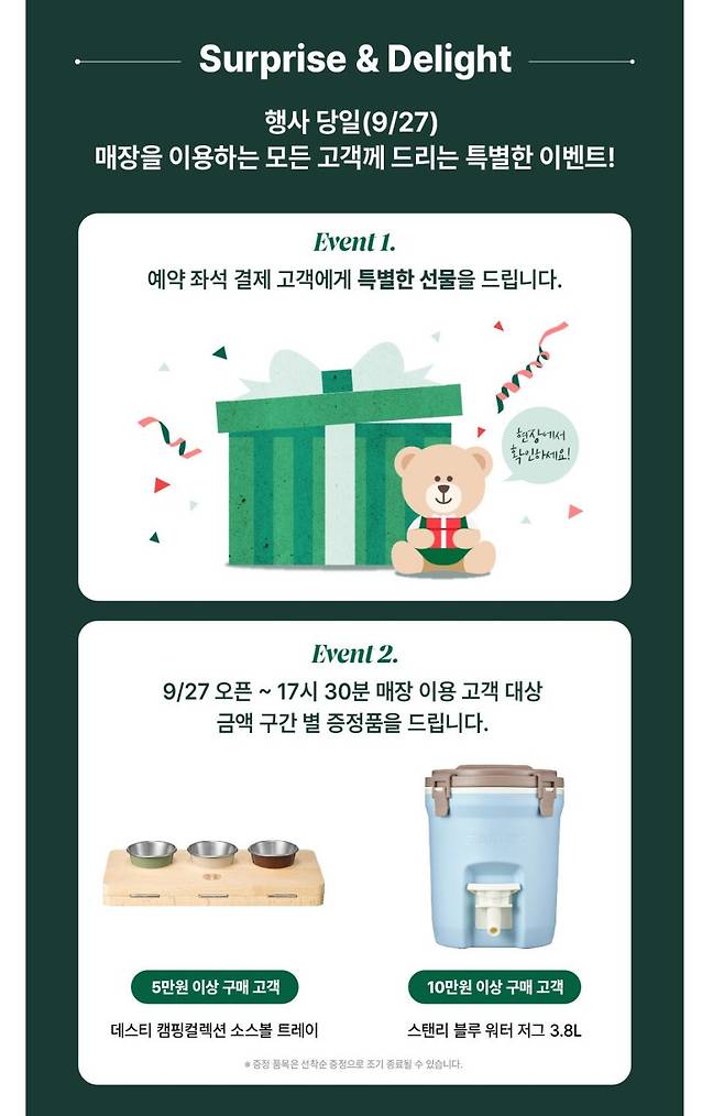 구매 금액 별로 증정품도 주고!