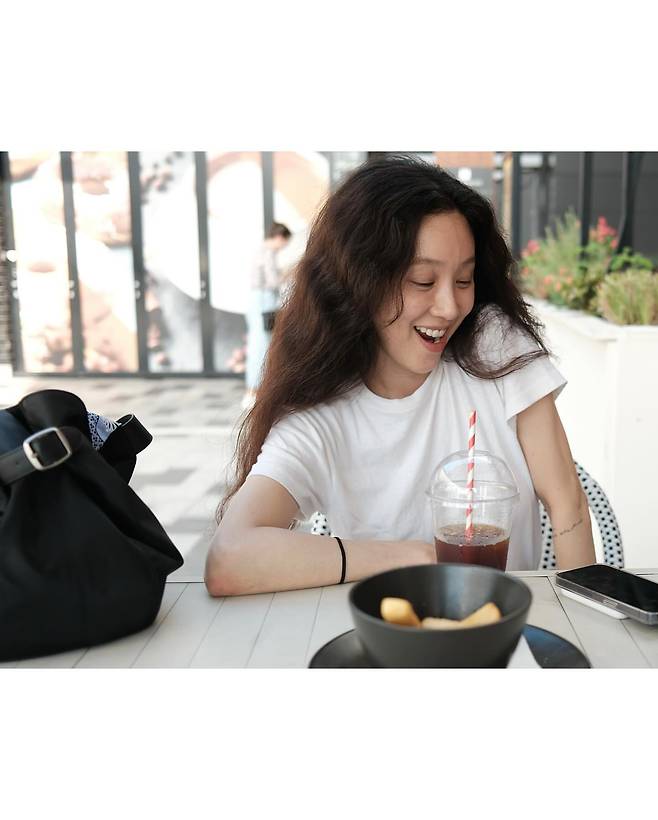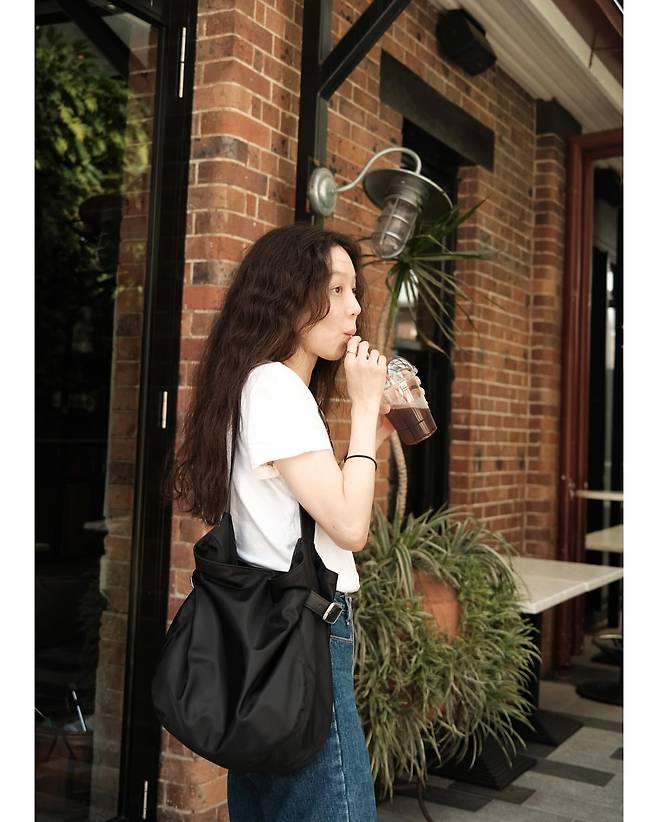 사진 속 정려원은 흰 티셔츠에 청바지만 입은채 청순한 매력을 뽐냈습니다.
