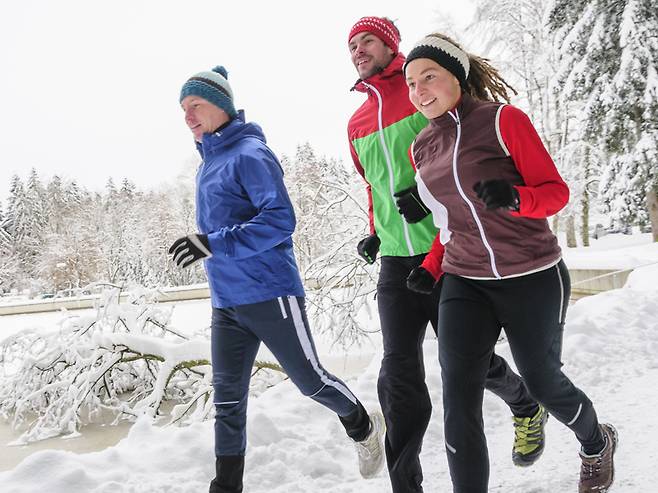 겨울에는 땅이 얼어 지면을 디딜 때 몸으로 오는 충격이 더 커질 수 있다. 우리의 몸 역시 겨울철이 더 긴장해 있고 굳어져 있기 때문에 달릴 때에는 푹신한 신발을 신어 관절을 보호하는 것을 추천한다.