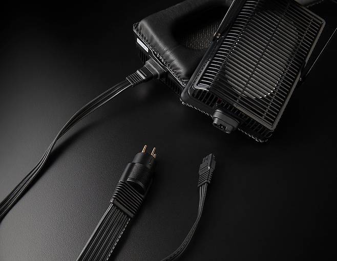 SR-L500 MK2의 달라진 점은 우선 케이블을 교환 가능하게 구조가 바뀌었다는 것. 최근 헤드폰 트렌드를 반영한 변화라고 생각하는데, 단선이 되었을 때 유지 보수가 용이하다는 점에서 매우 긍정적인 변화다. 이렇게 바뀐 케이블에는 좌우 표시가 되어 있고, 뒤집어 연결되지 않도록 홈이 파여 있다. 그리고 기존 스탁스 헤드폰 케이블처럼 도체 6가닥이 병렬로 배열된 납작한 외형을 통해 각 도체 사이의 정전 용량을 낮춘 케이블로 만들어졌으며, 도체는 HiFC를 사용했다. HiFC는 프로테리얼(구 히타치 금속)에서 만든 것으로, 구리에 미량의 티타늄을 첨가해 높은 전도율으로 뛰어난 전송 특성을 가지며 연화 특성도 뛰어난 차세대 구리 도체이며, 99.9999%의 고순도 6N 구리와 비슷한 특성을 가진다. 케이블 길이는 2.5m이며 단자는 금도금된 5핀 프로 바이어스 플러그로 되어 있다.