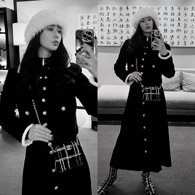 공개한 사진에서 클라라는 화이트 샤프카햇에 커다란 버튼이 돋보이는 몸에 핏된셔츠 롱 코트를 입고 9등신 몸매 라인을 뽐냈다.