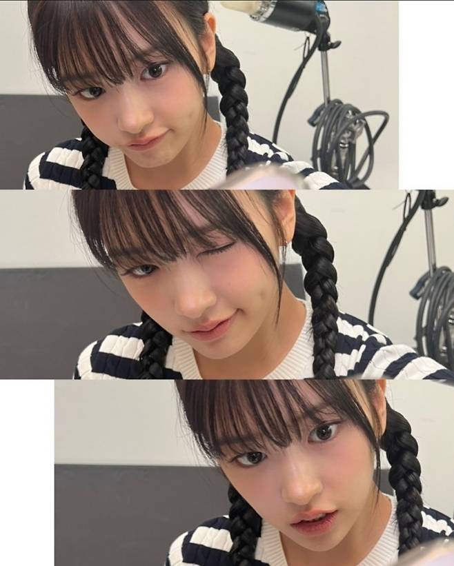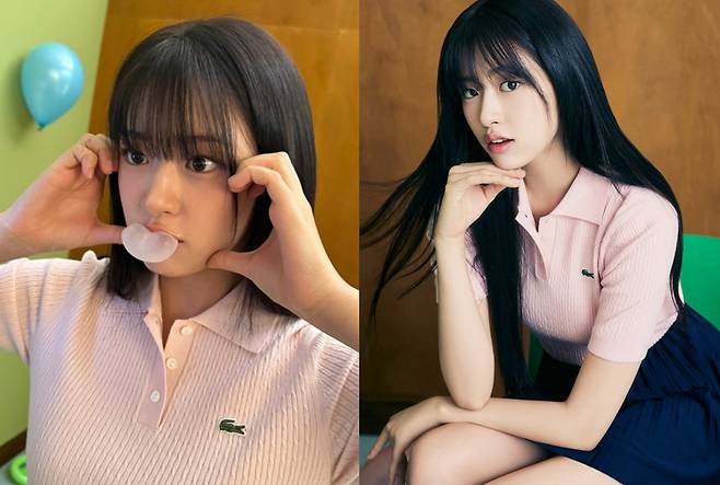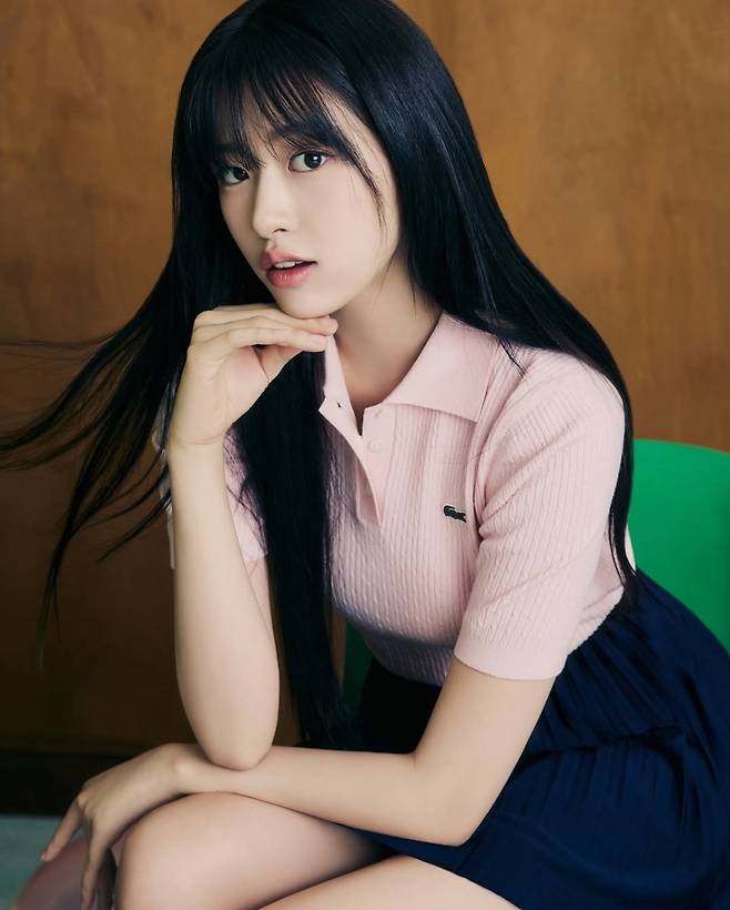 특히 핑크 컬러가 안유진 특유의 청량한 비주얼을 더욱 돋보이게 하며, 깔끔하게 정리된 앞머리와 긴 생머리가 소녀미를 극대화했습니다.