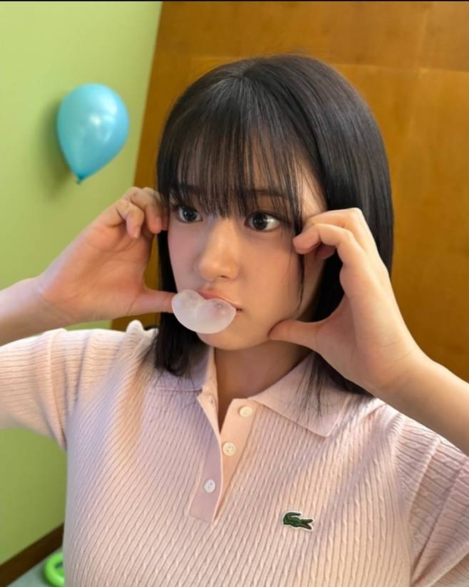 풍선껌을 불며 장난기 가득한 표정을 지어 보인 안유진은 평소 무대 위 카리스마 넘치는 모습과는 다른 반전 매력을 선보였습니다.