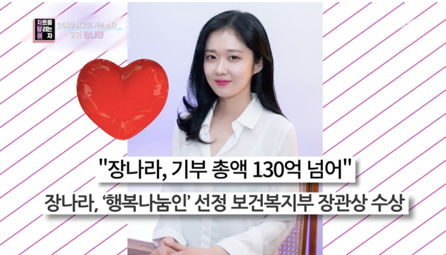 또한 장나라는 데뷔초부터 기부를 많이했으며, 직접 봉사활동을 다니는등 선한 영향력을 펼치고 있습니다.