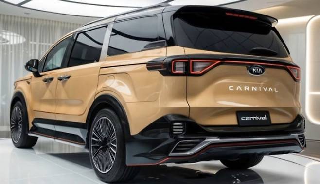 측면은 카니발의 상징인 두툼한 D필러와 슬라이딩 도어를 유지하되, 전체 라인을 더 매끈하게 다듬습니다. 후면은 일자형 테일램프가 수평으로 이어지면서 세련된 인상을 줍니다. 미니밴이지만 SUV 같은 강인한 느낌이 더해질 전망입니다.