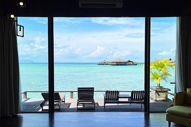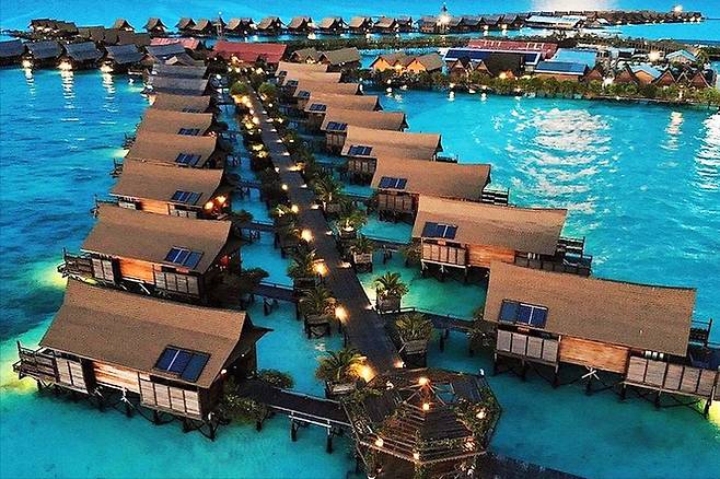 이곳은 바다 위에 떠 있는 수상 빌라 리조트로 몰디브라고 해도 믿을 정도로 비슷한 풍경을 자아내는데요.