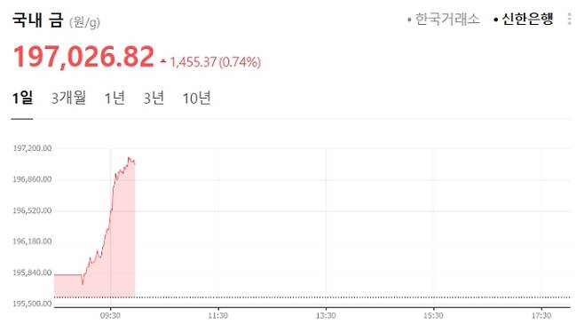 한국거래소(KRX) 금시장 현재 국내 금시세 기준 198,220원에 거래되고 있으며, 이전 거래일 종가 대비 1,420원(등락률 +0.72%) 올랐다.