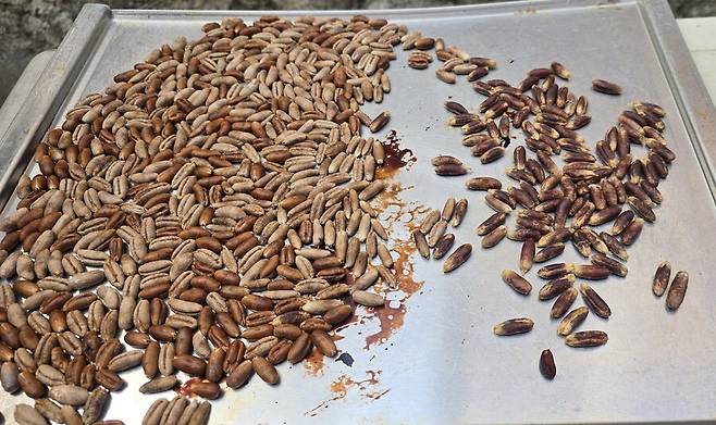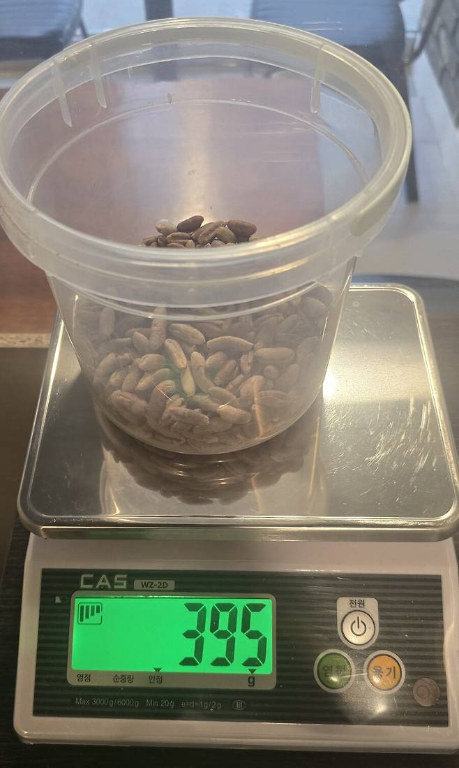총 4kg에서 나온 씨앗 무게입니다. 겨우 395g 입니다. 전부 망할놈의 파르드 때문이죠
