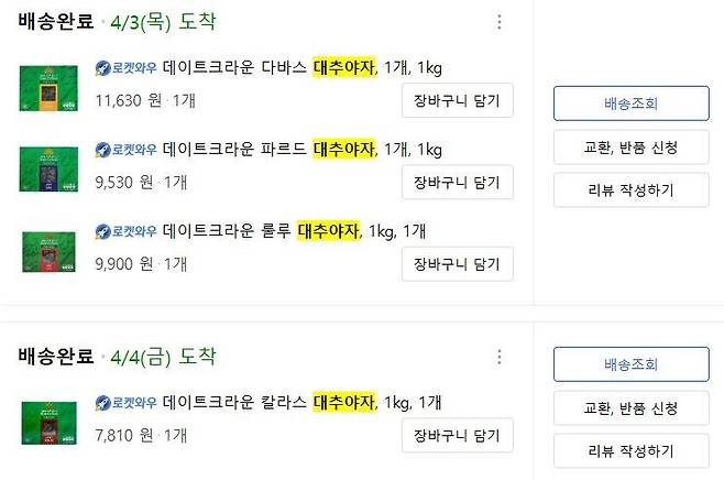 그래서 저렴한 대추야자를 찾다 품종별로 판매하는게 있길래 품종별로 구매했습니다.