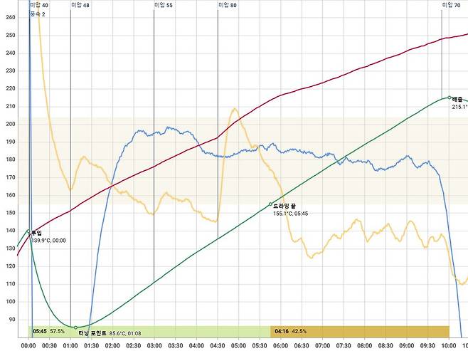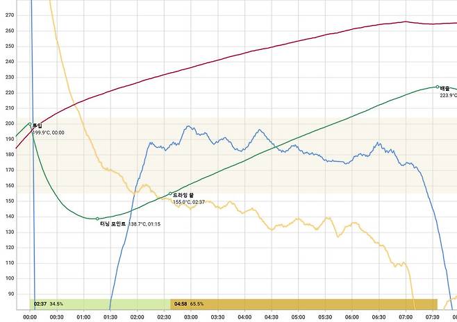 로스팅 프로파일은 파이어스코프로 측정했습니다