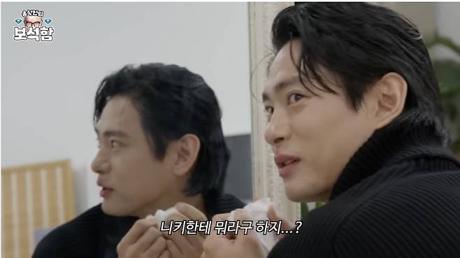 보석함에서 '뽀뽀하기'를 뽑은 유태오는 립스틱을 바른 홍석천의 볼 뽀뽀를 당하기 전 고개를 돌려 입을 맞췄는데요. 유태오는 입술에 묻은 립스틱을 닦으며 "니키에게 뭐라고 하지"라고 말해 웃음을 자아냈습니다.