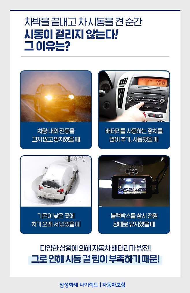 다양한 상황에 의해 자동차 배터리가 방전되고 그로 인해 시동을 걸 힘(전력)이 부족하게 됩니다.