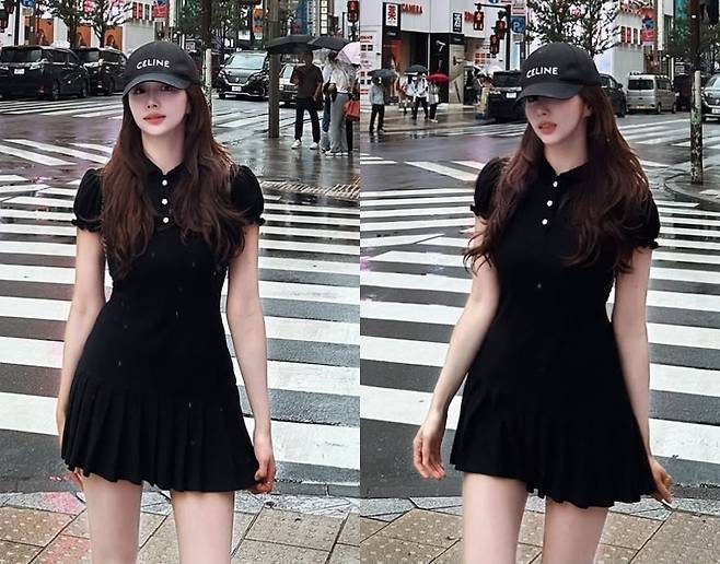 한보름이 도쿄 긴자의 횡단보도 위에서 분위기를 씹어먹는 블랙룩을 선보였습니다.