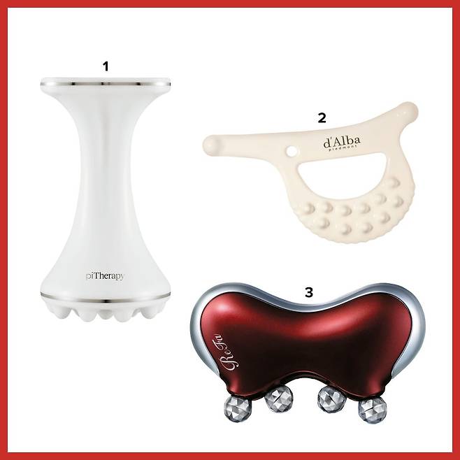 2 달바 슬림 핏 세라믹 괄사 얼굴이 자주 붓는 이들에게 제격. 그립감을 달리하며 마사지 강약 조절을 할 수 있다. 7만2000원.