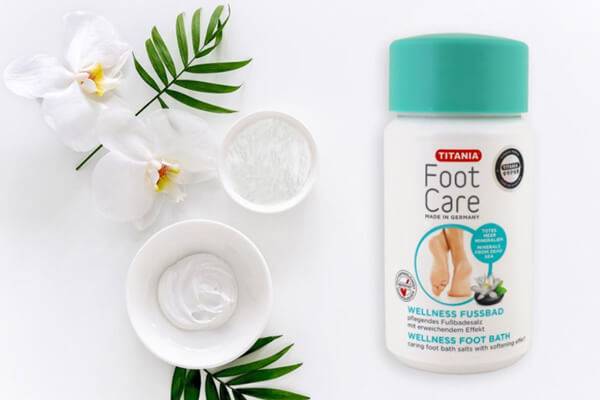 티타니아 족욕소금은 사해소금 성분의 족욕용 고급 입욕제다. 미네랄이 풍부하고 건강한 피부 관리를 도울 수 있는 지중해의 사해소금을 주성분으로 삼았다. 발 피부의 노폐물과 각질을 부드럽게 관리할 수 있다. 족욕소금을 일정량 덜어서 족욕기나 세숫대야에 담고, 온수와 잘 섞어서 발을 복숭아뼈 부분까지 담그면 된다. 10분 정도 족욕을 한 후에 흐르는 물로 발을 잘 세정하는 형태로 사용한다. 권장 소비자가는 14,000원이다.