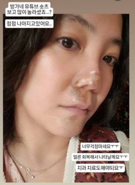 앞니 치료를 마치고 밝은 근황을 전했습니다.