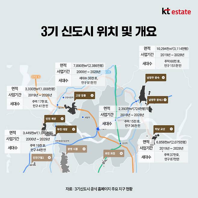 대통령 발언 중 ‘기존에 계획돼 있던 것을 그대로 하되, 대신 속도를 빨리할 생각’이라는 대목에서 3기 신도시의 공급에 속도를 더하는 방안도 포함될 것으로 보입니다.