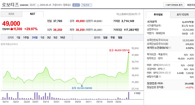 보유종목이 80개가 넘다 보니 종종 상한가 종목이 나옵니다. 로보티즈는 엘론 머스크가 중동 방문에서 옵티머스 휴머노이드 로봇 시연을 보이면서 다시 각광을 받고 있습니다. 휴머노이드 로봇의 관절 역할을 하는 액튜에이터 전문 기업으로 자율 주행 로봇도 하고 있었는데 물적분할 하였습니다.