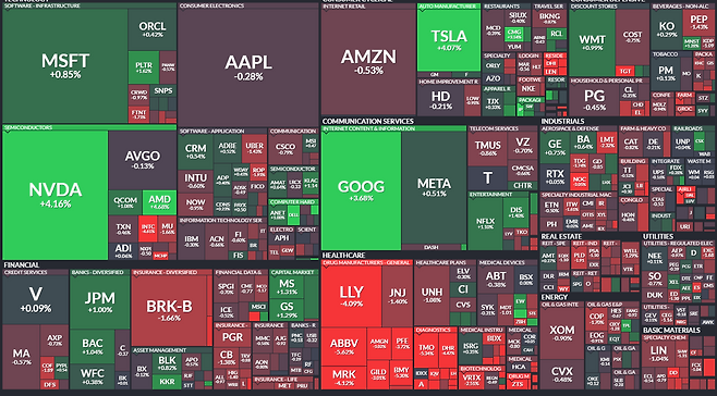 5월 14일 미국 주식시장은 혼조세입니다. 중동 순방의 덕을 보는 엔비디아, 테슬라는 많이 올랐습니다. 구글도 인공지능 검색을 도입한다는 소식에 올랐습니다. 반면 제약 바이오는 트럼프 행정명령 불확실성에 조정을 보였습니다.