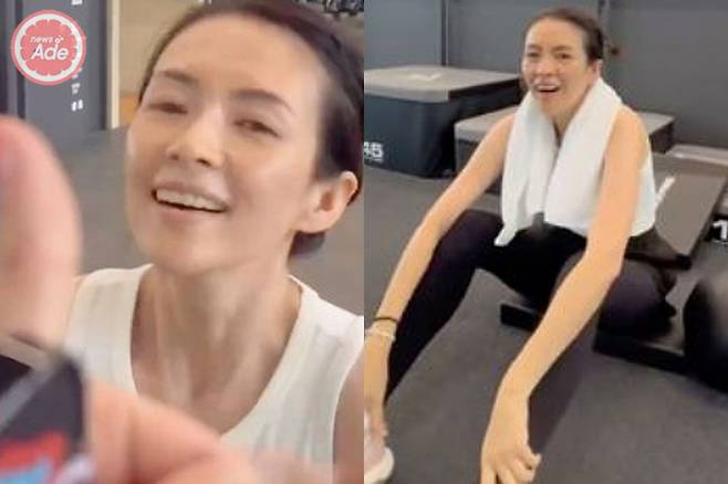 공개된 영상에 따르면 장쯔이는 민소매 운동복을 입고 헬스장에서 운동 중인 모습이며, 민낯으로 자연스러운 분위기를 자아냈죠.