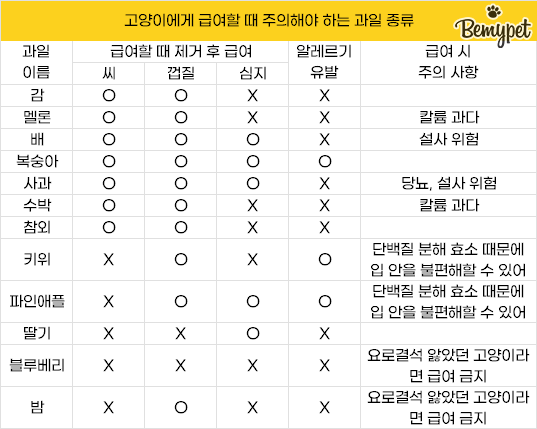 고양이에게 급여 시 주의해야 하는 과일 종류
