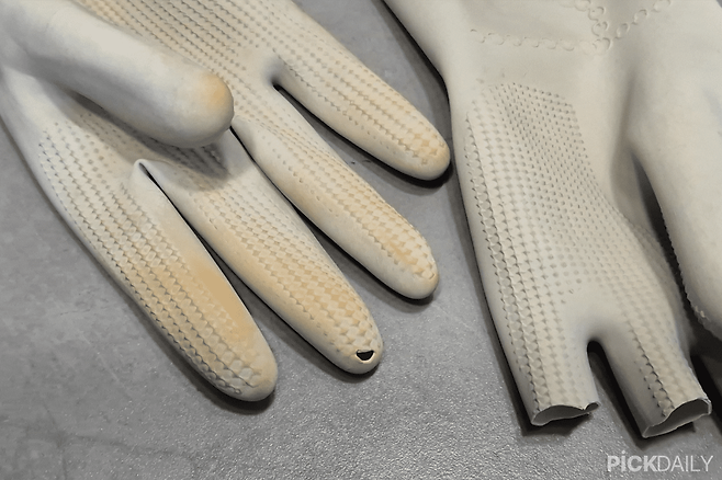 고무장갑을 사용하다보면 손가락 하나만 구멍이 나거나, 갈라져 물이 들어와 더이상 사용할 수 없을때가 있는데요.