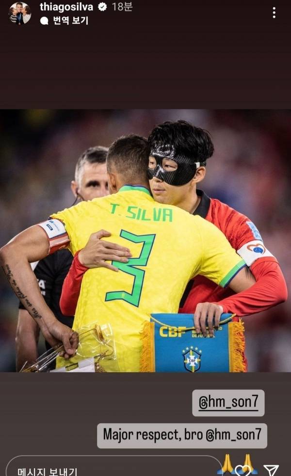 베테랑 티아고 실바 역시 인스타에 별도로 손흥민에게 리스펙을 보냈다.