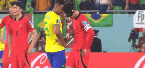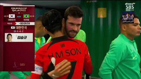 그 순간 카세미루가 손흥민에게 무어라 속삭이기 시작했다.