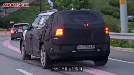 그외 사이드미러 디자인은 현재 활발히 테스트를 진행중인 현대차 플래그십 준대형 SUV 팰리세이드 풀체인지와 동일한 디자인이 적용되어 있는 모습을 확인할 수 있었으며 보다 주목되는 후면부 디자인은 사실상 파격적인 디자인 변화가 포착되었고 이전 대비 볼륨감 있는 삼각형태의 리어램프가 아닌 픽셀 패턴이 적용된 리어램프 디자인은 기존 전기차 후면부에 적용된 픽셀 패턴의 디자인과 다른 큼지막한 픽셀 패턴 램프 디자인이 적용되어 시선을 사로잡고 있습니다.