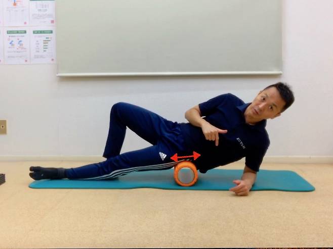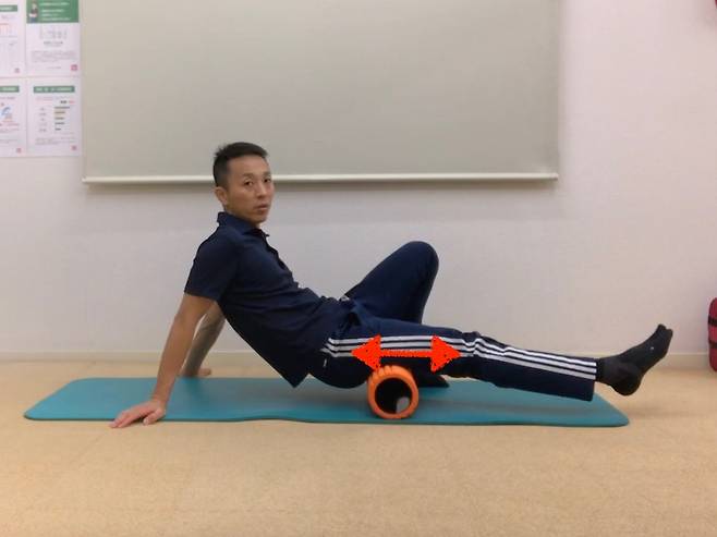 모든 동작이 끝나면 무릎을 다시 구부리고 발을 바닥에 내려놓는다. 이후 엉덩이를 들어 폼롤러를 조심스럽게 빼고 천천히 바닥에 눕는다. 갑자기 일어나지 말고 몸이 충분히 풀린 뒤 움직이는 것이 좋다.