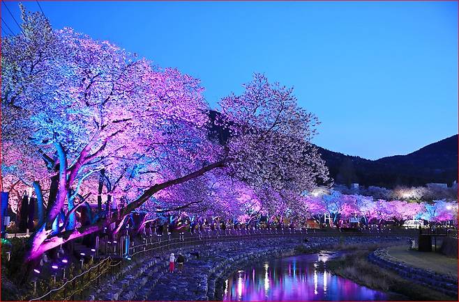 수안보의 봄이 특별한 이유는 온천과 벚꽃이 함께하기 때문입니다. 석문천변을 따라 이어지는 약 400m 길의 벚꽃길은 밤이 되면 조명과 어우러져 또 다른 분위기를 만들어 냅니다. 그래서 낮에는 산책, 밤에는 야경 감상을 동시에 즐길 수 있습니다. 특히 한국관광공사 야경 100선에도 선정된 이 풍경은 매년 많은 사람들이 찾는 이유가 됩니다.