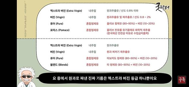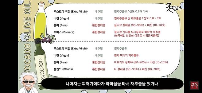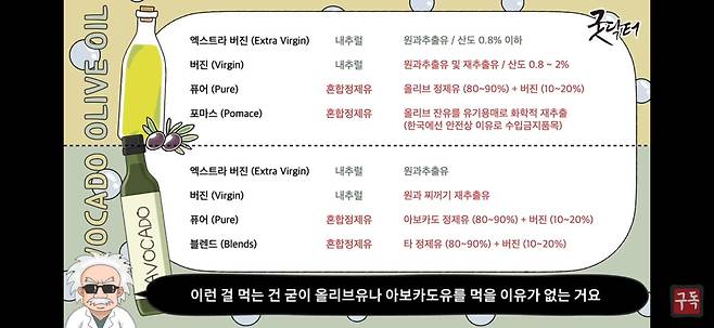 고온요리는 아보카도유, 중온요리는 해바라기씨유, 생식은 올리브유, 들기름 등 목적별 사용 권장