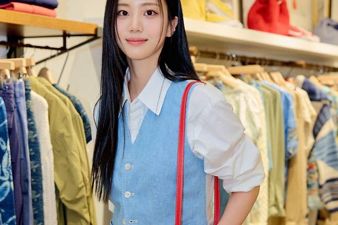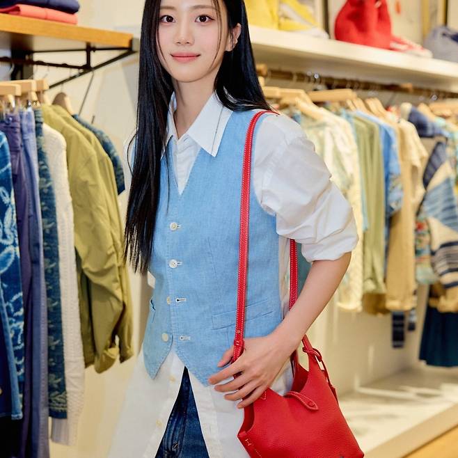 액세서리는 미니멀하게 유지한 채, 레드백 하나만으로도 룩에 생기를 불어넣는 전략은 사랑스럽고도 세련된 인상을 남긴다.
