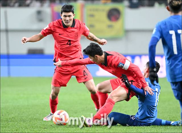 [축구대표팀의 이강인, 손흥민, 김민재. 사진 = 송일섭 기자 andlyu@mydaily.co.kr]