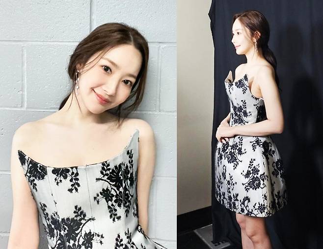박민영은 블랙앤화이트 플라워 미니드레스를 착용해 고혹적이면서도 로맨틱한 분위기를 자아냈습니디.