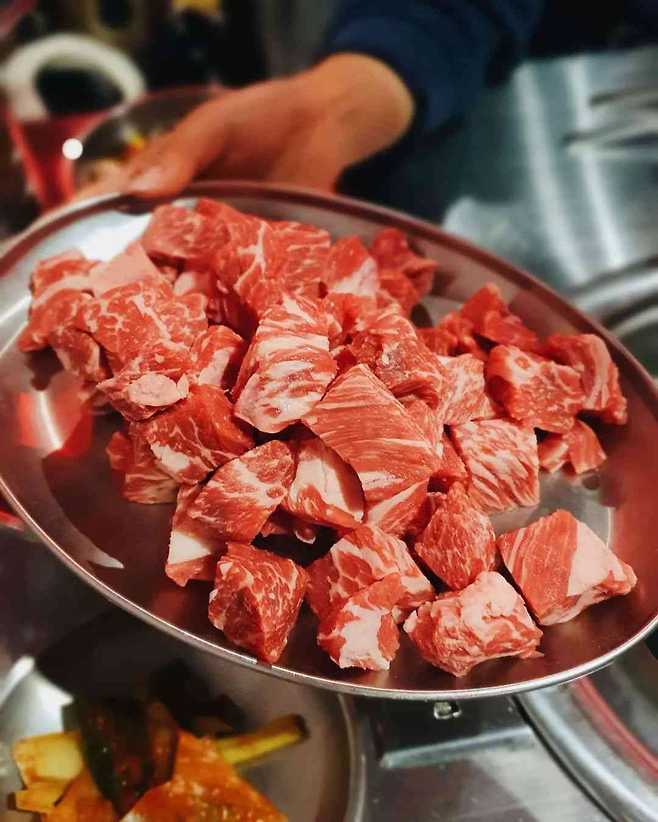 네모난 모양으로 두툼하게 썰어내 보기만 해도 입안에 육즙이 팡팡 터질 것 같은 깍둑고기. 큐브 모양으로 두툼하게 썰어내기 때문에 안에 꽉 찬 육즙은 물론 씹는 식감도 훌륭하다. 오늘은 고기 본연의 육향과 가득 찬 육즙, 고기의 식감까지 훌륭한 삼박자를 갖춘 깍둑고기 맛집 5곳을 소개한다. 줄 서서 먹는 한우 1++ 깍둑고기부터 불향이 제대로 밴 깍둑고기 맛집까지! 비주얼부터 맛있는 깍둑고기 맛집 5곳을 지금 알아보자.