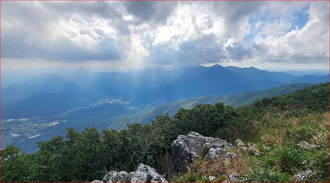 가지산 정상: 탁 트인 조망, 날씨가 맑으면 멀리 지리산까지 조망 가능