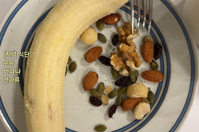윤승아의 저녁 식단은 우유, 바나나, 견과류 단 3가지로 구성된 간단한 식사지만,
