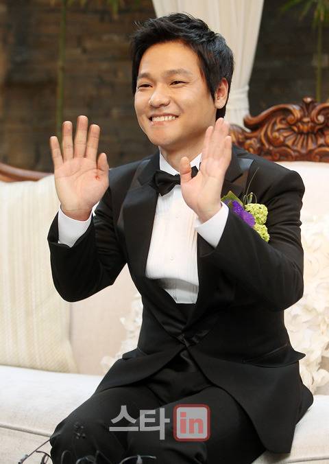 주례는 배우 이순재가 맡았고, 사회는 박경림, 축가는 용띠클럽 멤버 김종국과 홍경민이 불러 화제를 모았다.