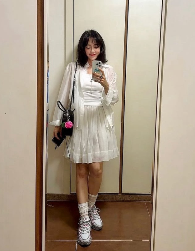플랫슈즈로 마무리하며 편안하면서도 단정한 데일리룩을 연출했습니다.