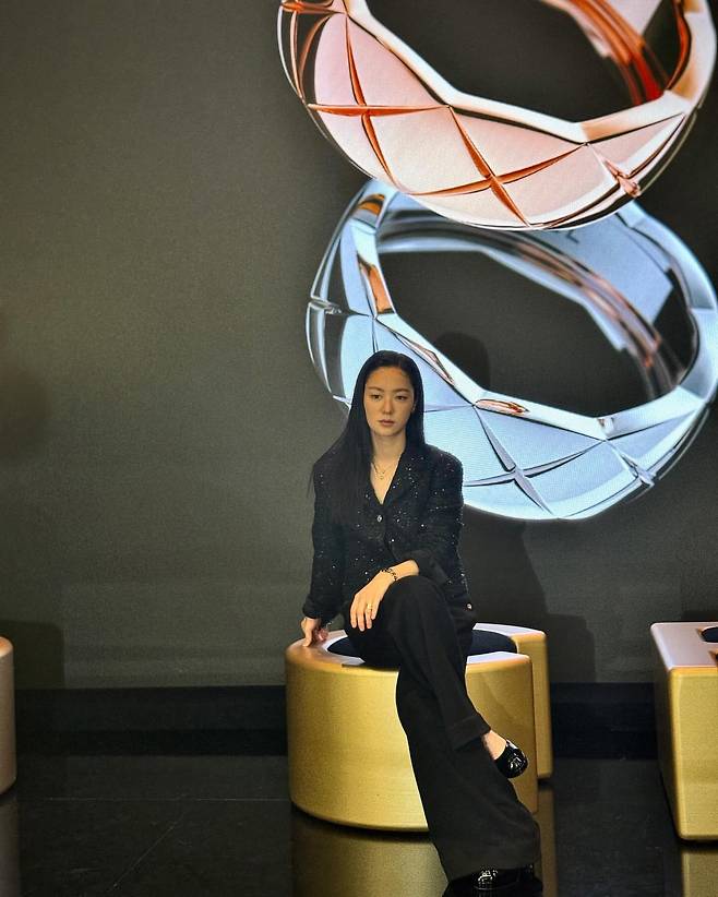 이벤트 현장에서 전여빈은 스팽글 장식의 블랙 재킷으로 화려함을 더했다. 올블랙 코디네이션으로 시크함을 유지하면서도 반짝이는 디테일로 럭셔리한 분위기를 연출하고 있다. 대형 스크린을 배경으로 한 이 룩은 레드카펫에서도 손색없을 완성도 높은 스타일링을 보여준다.