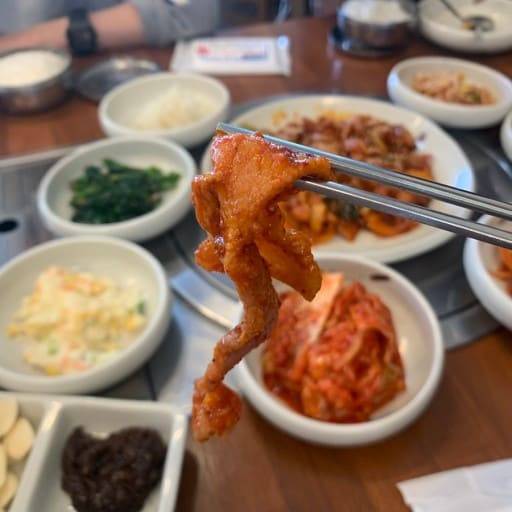 특히 제육볶음은 이곳의 대표 메뉴로, 쌈과 함께 먹으면 그 맛이 일품입니다. 2인 이상 주문해야 하는 점은 아쉽지만, 양과 맛 모두 만족스러워 여행객들에게 강력 추천됩니다.
