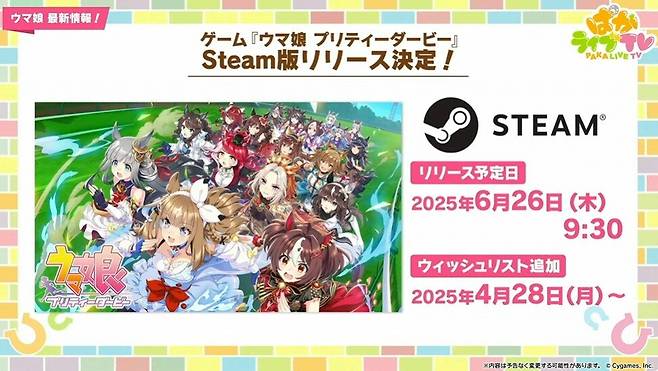 사이게임즈는 27일, 공식 유튜브 라이브 방송인 '파카라이브TV Vol.52'를 통해 우마무스메 프리티 더비의 스팀판 발매 소식을 발표했다.