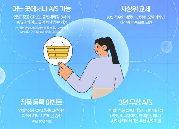 이처럼 명확한 서비스 규정하에 믿고 구매하는 정품 CPU가 되도록 책임감을 갖고 소비자의 불편을 빠르게 해소하기 위해 노력하는 인텔 공인대리점의 정품 CPU와 달리, 벌크 CPU는 제품 특성상 체계적인 서비스를 기대하기 어렵다.